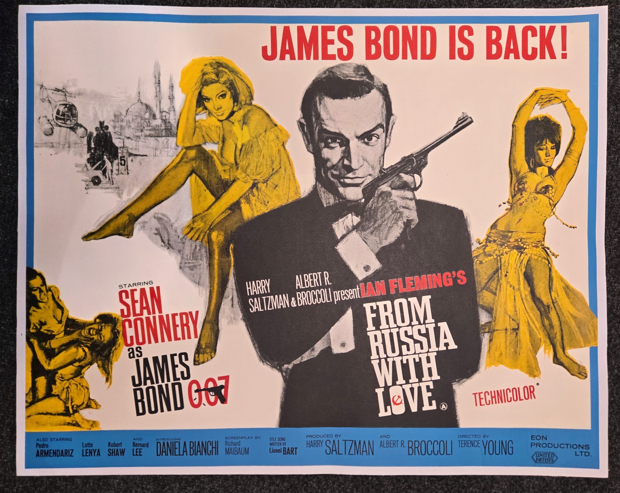 One of our favourite Bond artworks is the beautiful Quad artwork for FRWL but on a smaller UK half sheet – which are much rarer to find. Presented beautifully on linen.