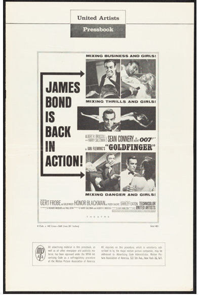 Goldfinger (United Artists, 1965). Folded, Fine/Very Fine. Uncut Pressbook (8 Pages, 11″ X 17″). James Bond.