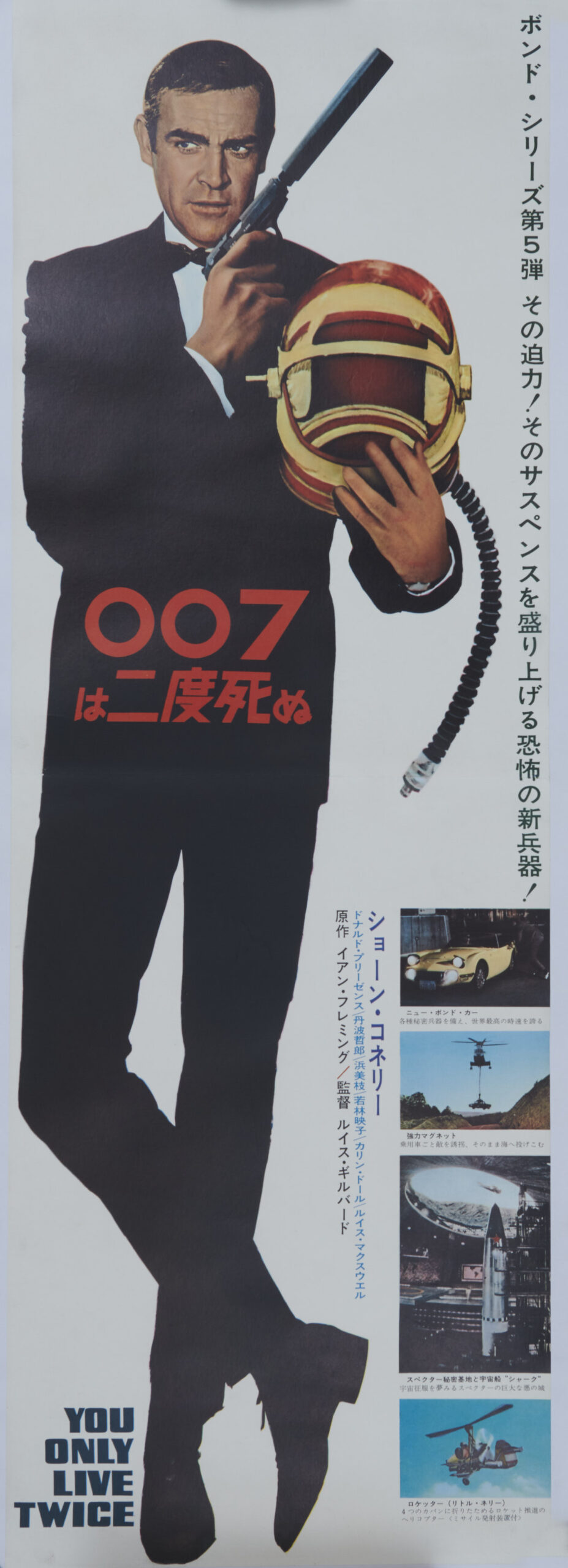 You Only Live Twice (United Artists, 1967). Very Fine- on Linen. Japanese STB Tatekan (20″ X 58″). Frank McCarthy and Robert McGinnis Artwork. Starring Sean Connery, Akiko Wakabayashi, Mie Hama, Tetsuro Tamba, Donald Pleasence, Bernard Lee, Lois Maxwell, Desmond Llewelyn, Charles Gray, Tsai Chin. Directed by Lewis Gilbert. A restored poster with bright color and a clean overall appearance.