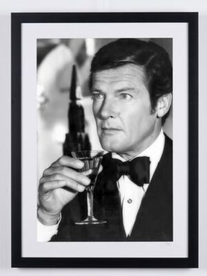 James Bond – Roger Moore as “James Bond 007” in classic pose – Photography, nr 01/20 – 70X50 cm – Serial 16132 – Framed, with numbered COA, Hologram and QR Code